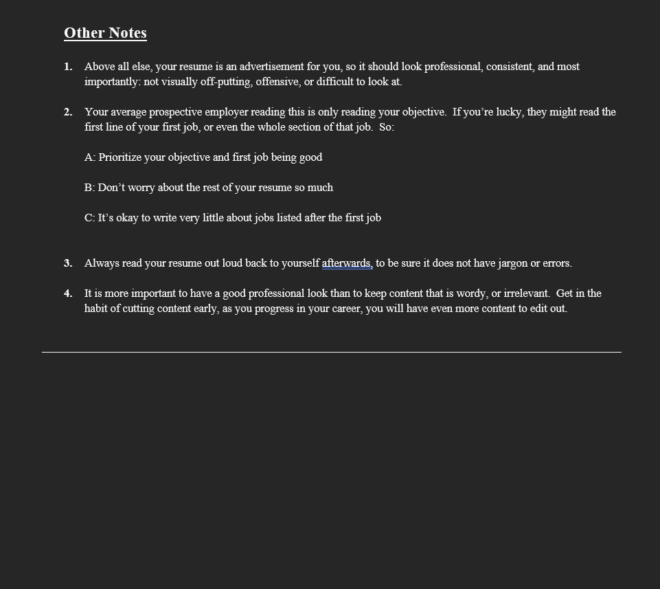 The Long version includes a guide with additional tips on resume creation, including how to write an objective statement.